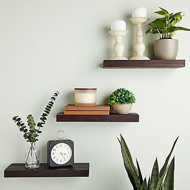 Set Of 3 Dark Brown Wooden Floating Shelf For Nursery Office Bedrooms Space Saving 15 7 X